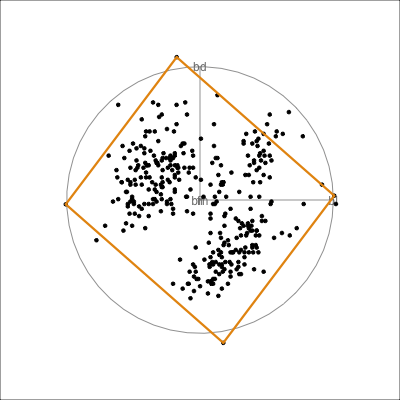Convex hulls are often used to summarise clusters in 2D. It is possible to view these in high-d, too.