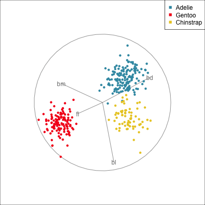 This is especially useful for exploring classification models, comparing boundaries produced by different models. (The same penguins data used here.)