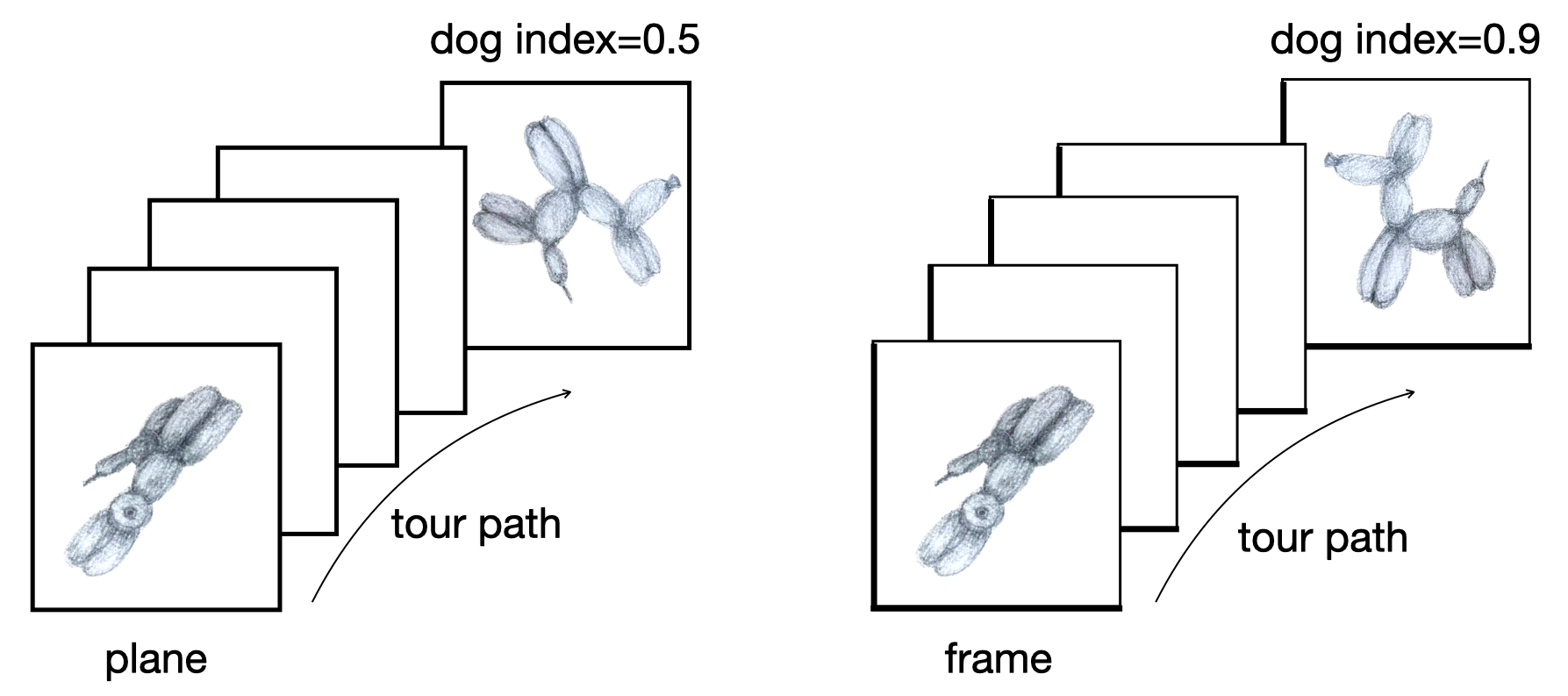 Givens interpolation ends at requested frame, but geodesic interpolation arrives at the plane, is frame-agnostic, and that is problematic for optimisation using the guided tour.